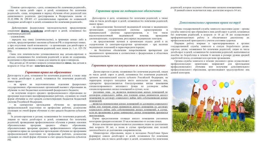 Основные права и гарантии детей-сирот и детей, оставшихся без попечения родителей