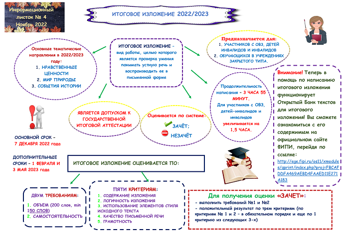 Для участия в итоговом собеседовании по русскому языку обучающиеся подают заявление в своих школах не позднее 25 января 2023 года.