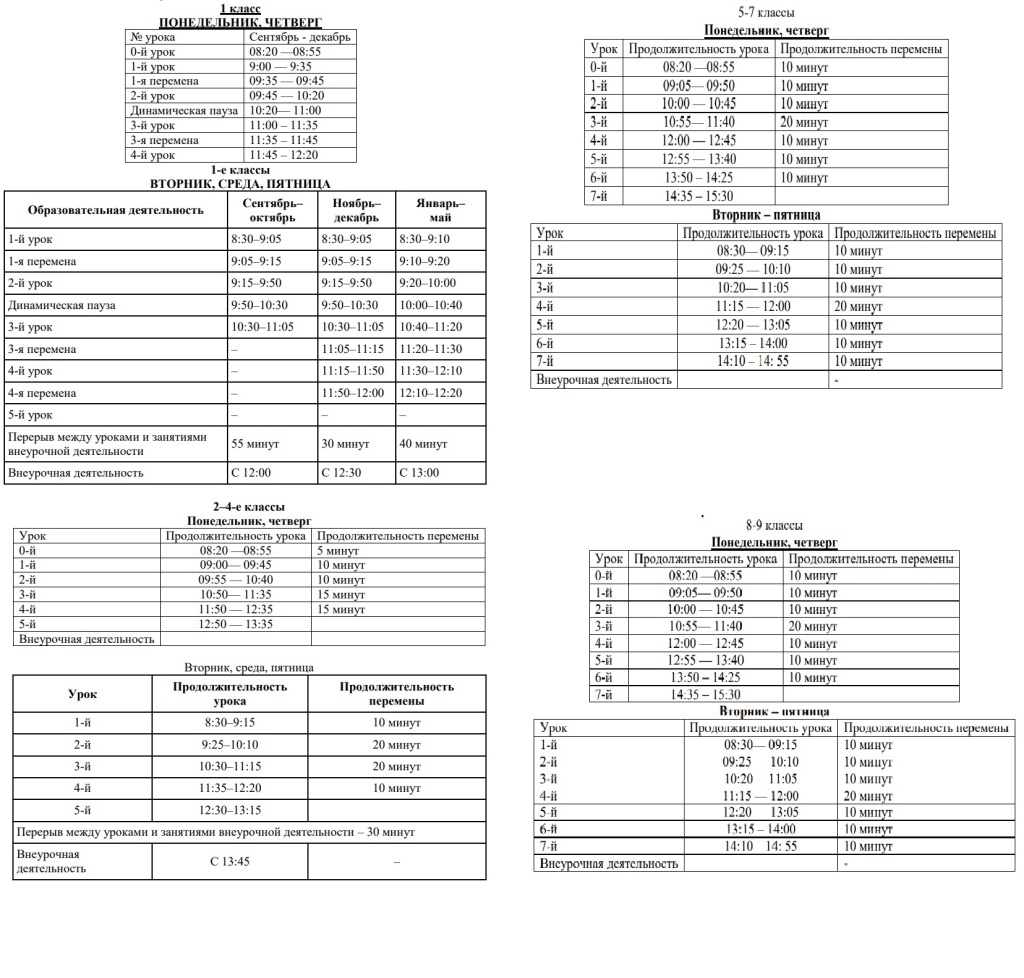 - во 2-11 классах – 45 минут.