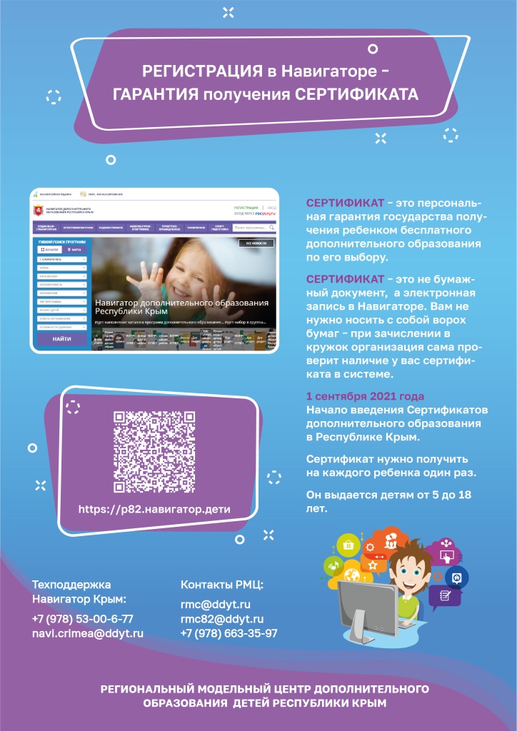 В настоящее время на территории Республики Крым вводится в действие Информационная система «Навигатор дополнительного образования детей Республики Крым». Аналогичные Навигаторы дополнительного образования вводятся в действие во всех регионах РФ начиная с 2017 года. На данный момент они функционируют уже более чем в половине регионов РФ.